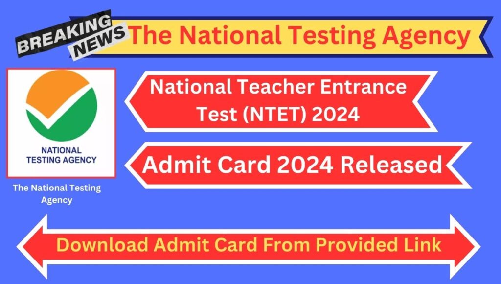 NTET Admit Card 2024: The National Testing Agency (NTA) has officially announced the recruitment notification for the National Teacher Entrance Test (NTET) 2024. The NTET 2024 Admit Card has been released by the National Testing Agency (NTA). Candidates who have successfully applied for the National Teacher Entrance Test can now download their admit cards from the official NTA website. Visit www.nta.ac.in to access and download the admit card.